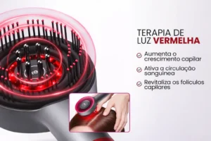 A tecnologia de luz vermelha atua diretamente no couro cabeludo: